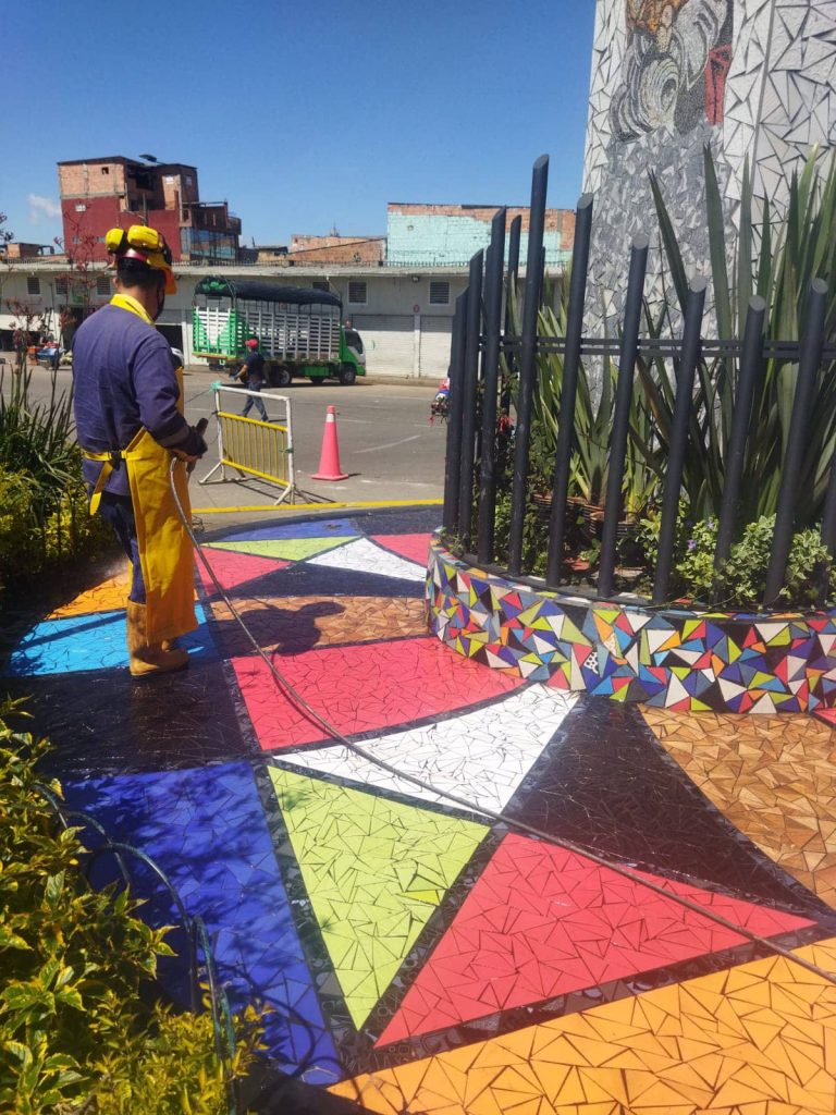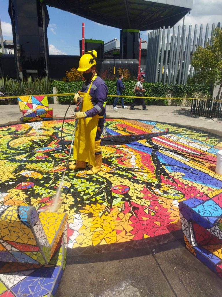 Lavado de mosaicos y bancas